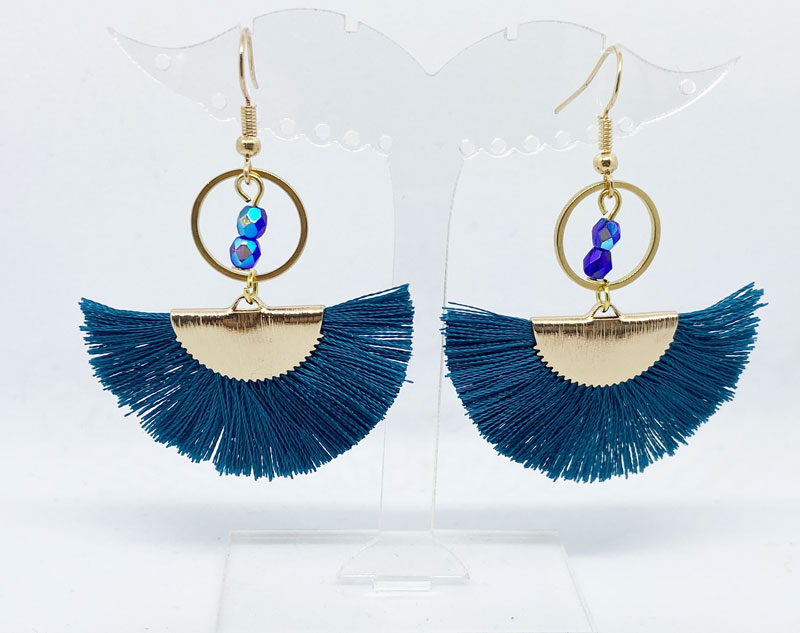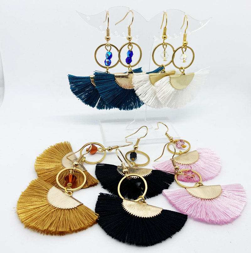 Déclinées en plusieurs coloris (blanc, noir, bleu, rouge, vert, ...). Leurs formes en demi-cercle et leurs perles donneront une petite touche de folie à vos tenues.